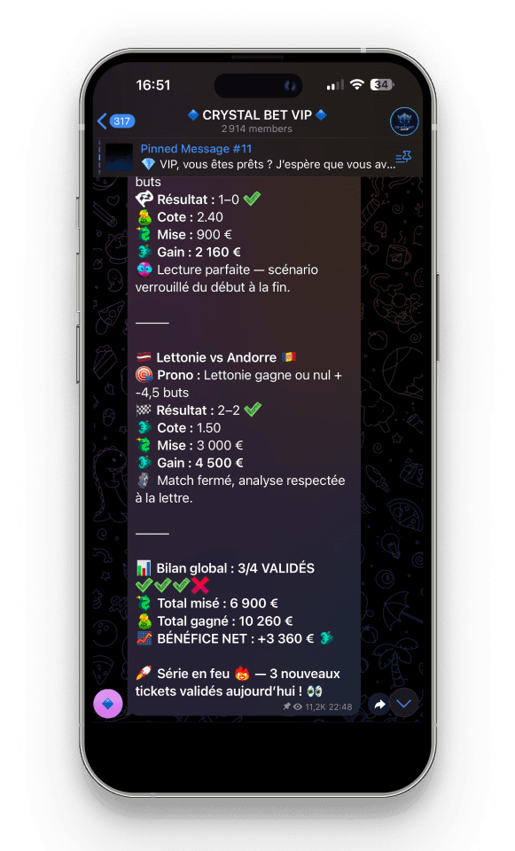 Reçois chaque jour les paris que je sélectionne directement sur ton téléphone.